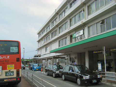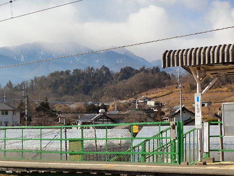 スイカ端末はあるが切符自販機はなしその代わりに乗車駅証明書の発行機が設置してあり、これで降りた駅で精算する。降りた客からも切符の回収は省略(ワンマンでもないし6両編成で難しい)。 駅は小高い盛土の上で見晴らしがよく富士山も綺麗に見える。 |