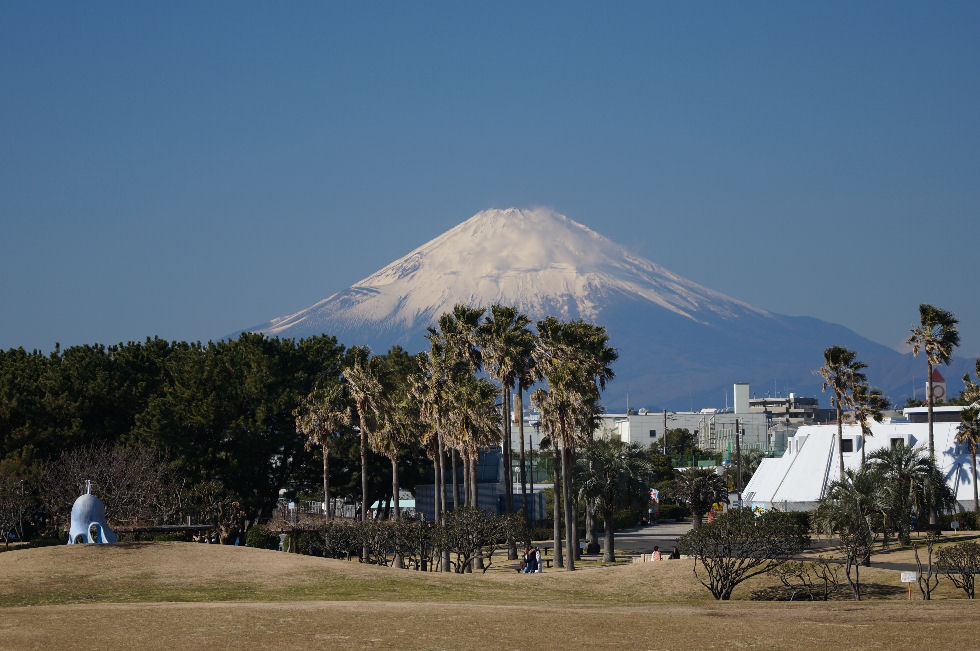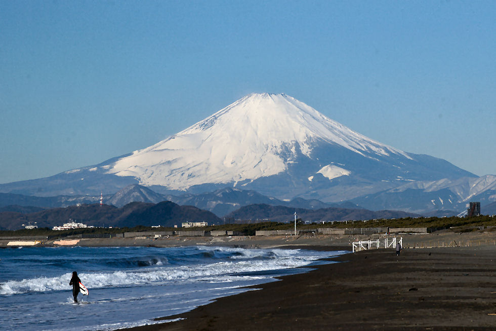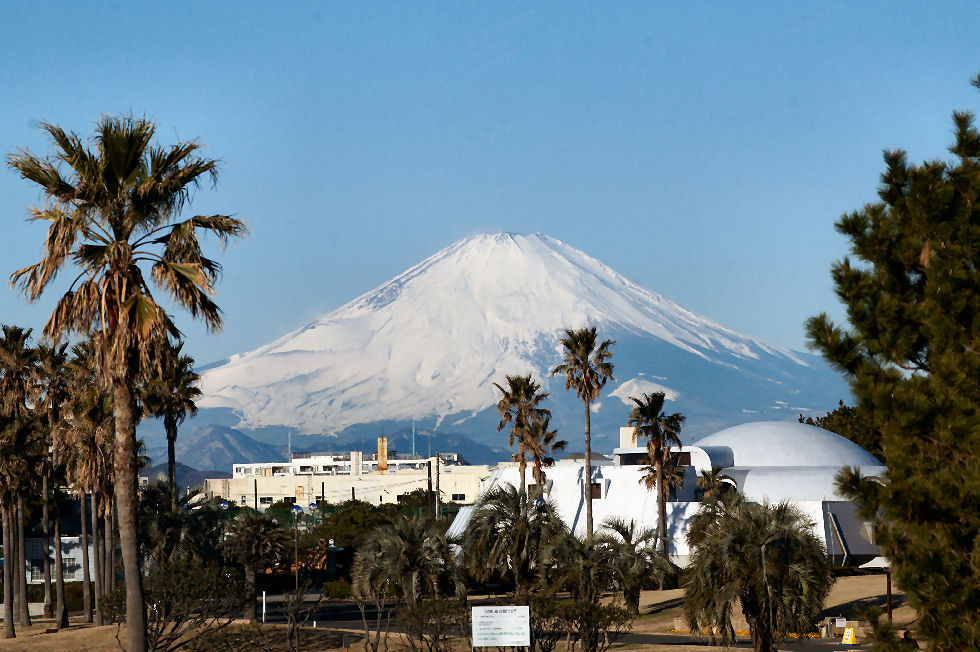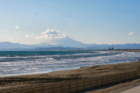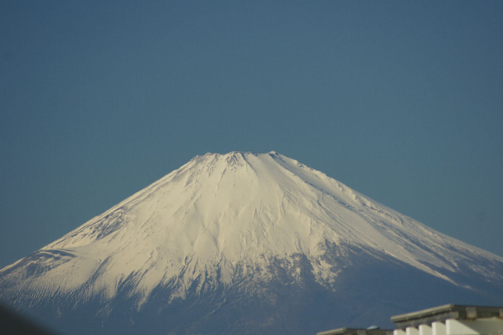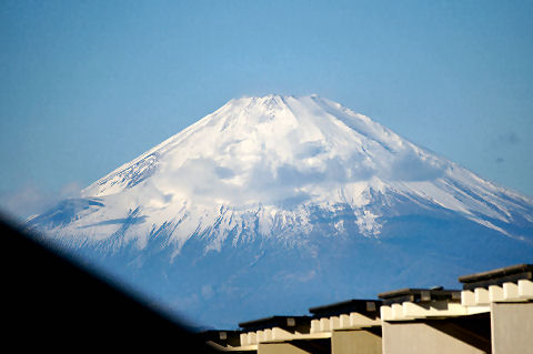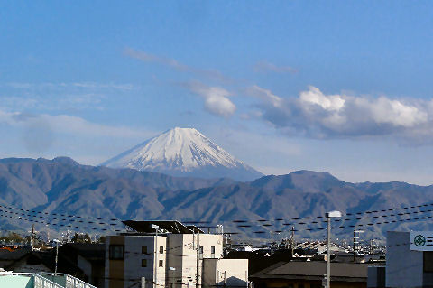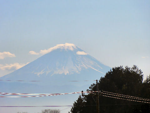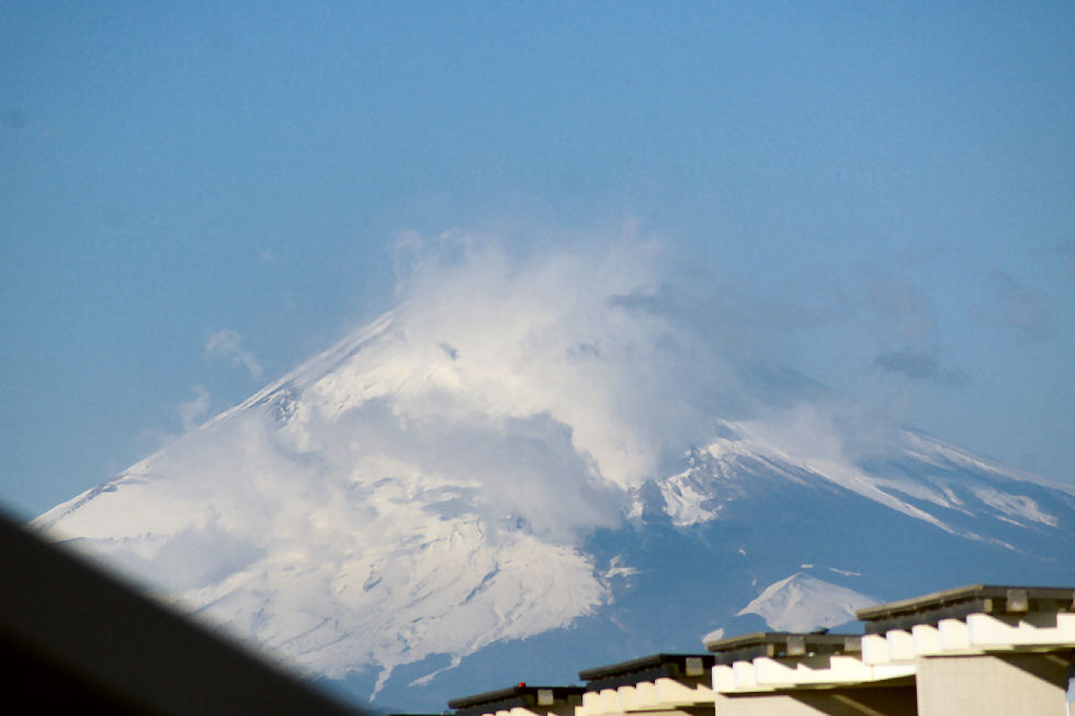 暖かった昨日と打って変わって冬の天気で風も強い。富士山はやっと冬の景色が安定か? |