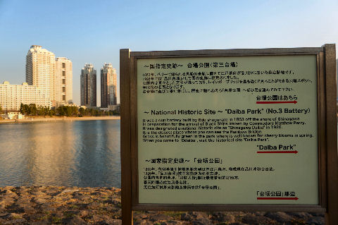 続100名城に選定されたお台場(今は都立の公園)を訪問、橋を渡るときに見掛けるが実際に行ったことはなかった場所。 アクセスが良いためか外人観光客の姿も見かける(もちろん普通の観光)。 |