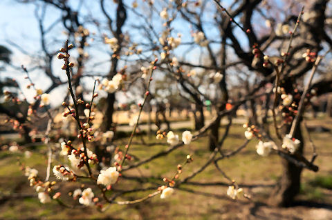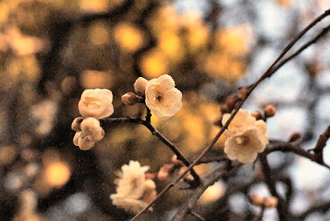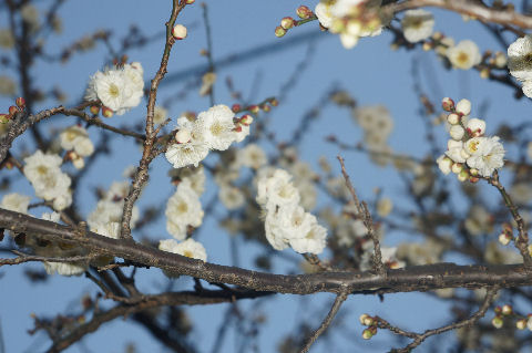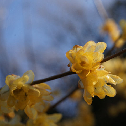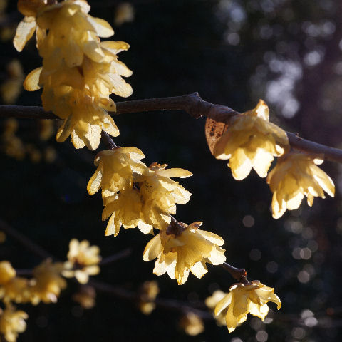 蠟梅が先はじめ、来月には梅か今の時期の花は少なく蠟梅が咲き始め、蠟梅の木は数本あるがまだ一部しか開花していない、まだまだこれから。 |