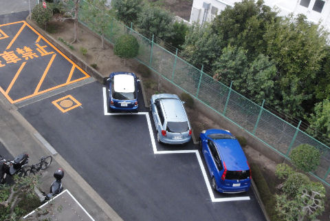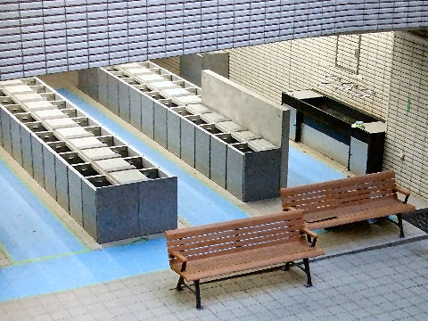 バイク用駐輪場も完成もともとバイクの駐輪は想定していない?ので歩道に置くという悪習が定着、今回やっと大型用と小型用で整備。 |