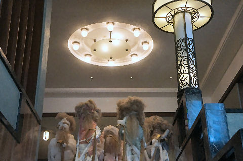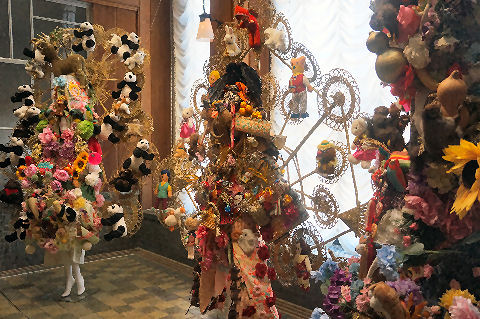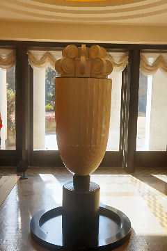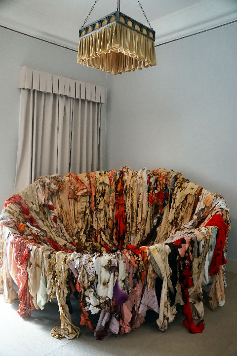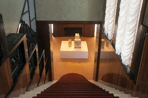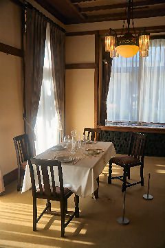 珍しくカメラでの撮影自由という展示会、邸内の様子も思い切り撮影できた。 この邸宅はかなり古いが完全に洋式のようで浴室には浴槽、便器とビデが設置されていた。 |