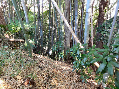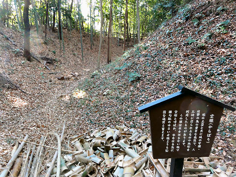 ほとんど竹林と空堀・土塁市民の森として使われているが案内板はそれなりに設置、でも竹や木が生い茂り周りはほとんど見えない。 |