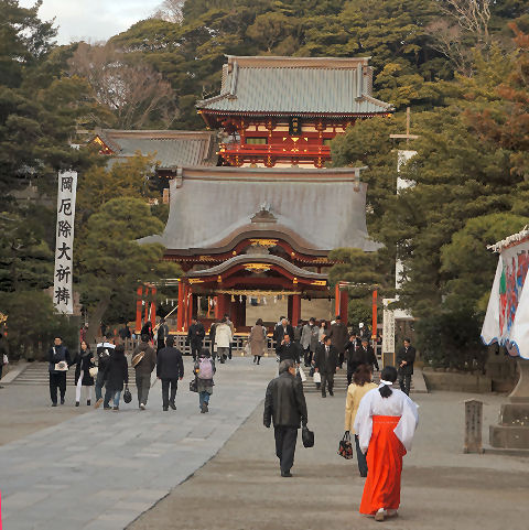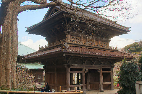 浄智寺は鎌倉七福神めぐりの人で賑わっていたが中には花はなさそうなので入らず。 |