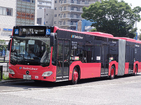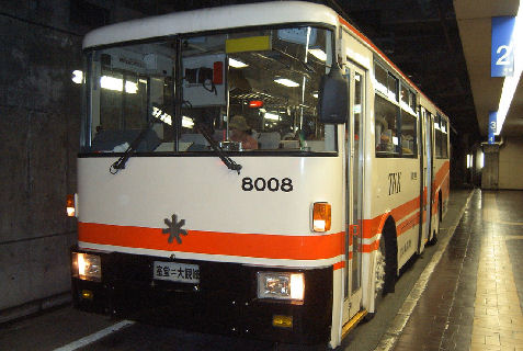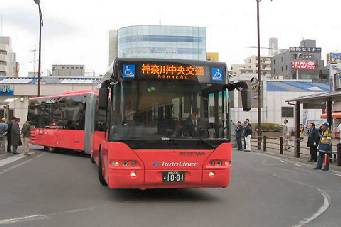 神奈中のツインライナードイツ・ネオプラン製の連接バス。 現在国産では生産されていないようだが、日野といすゞが共同開発中で来年には出てくるよう。 |