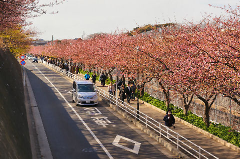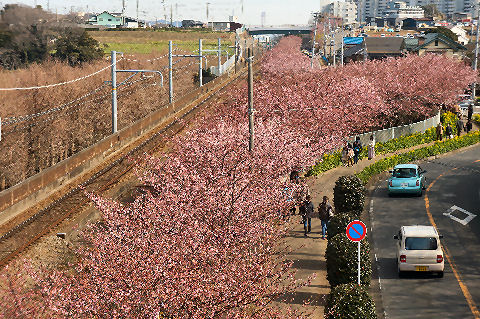 復路はα700+75-300mmズームで撮影。カーブの先の見通しの良いポイントで待つ。 昨日より風があり寒いせいか人が少なめ。 |