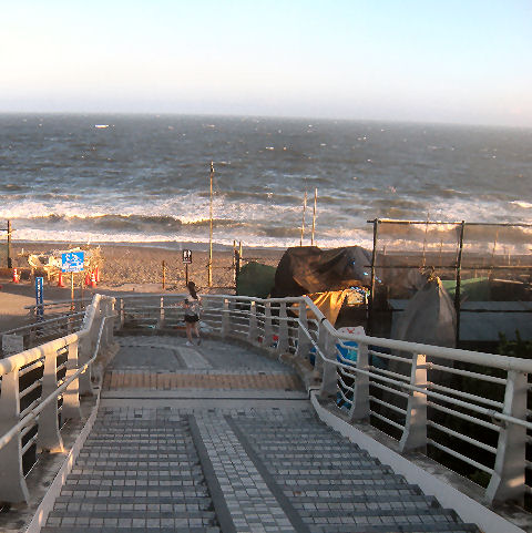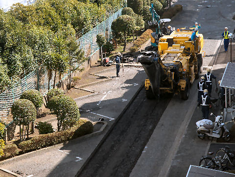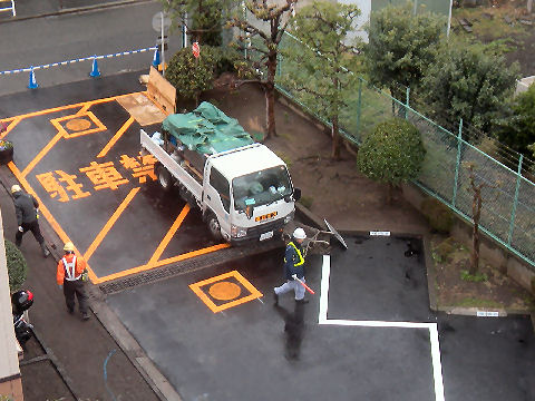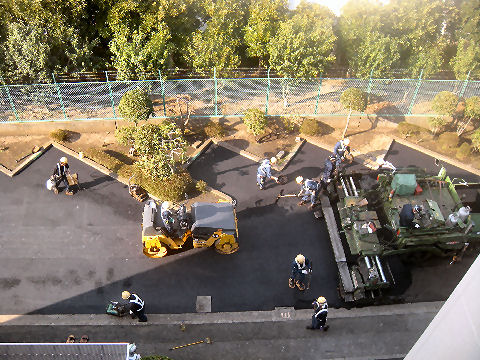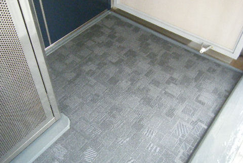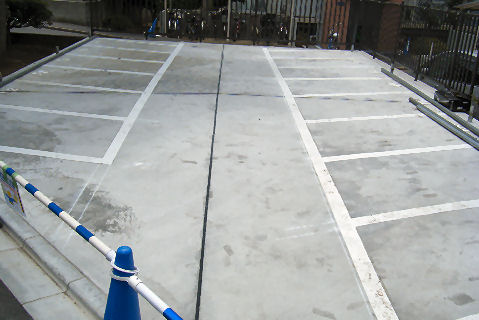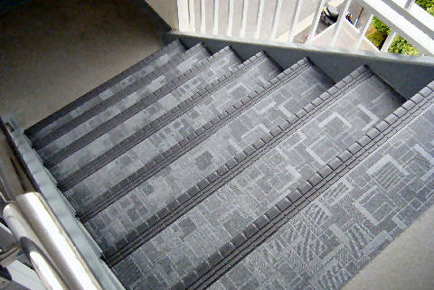階段の防水工事が終了前回は塗装による防水工事だったが今回は周辺のみ塗装処理でメインは滑り止め付きのシート貼り付けによる工事。 階段のノンステップ部も一体化、掃除はしにくそうだが。 |