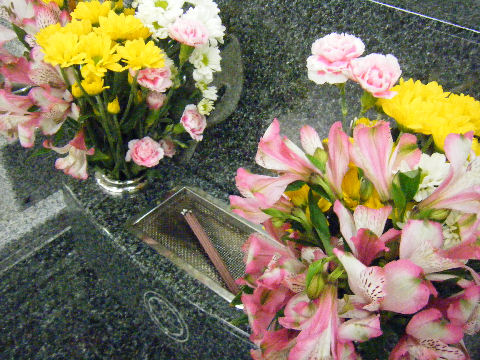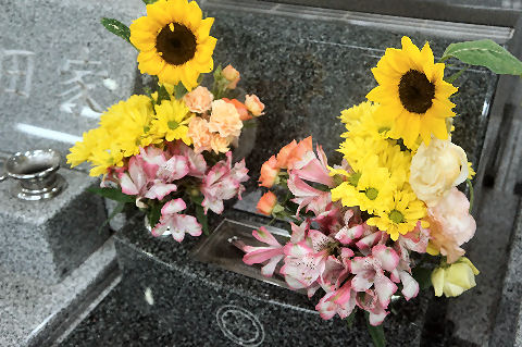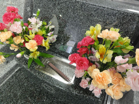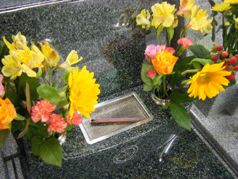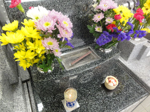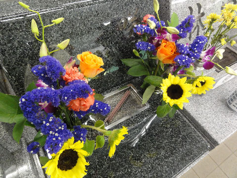 墓参りに6月最後の墓参りに、暑くなり水が無くなるのが早い。 |