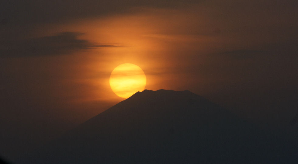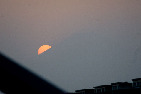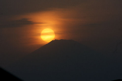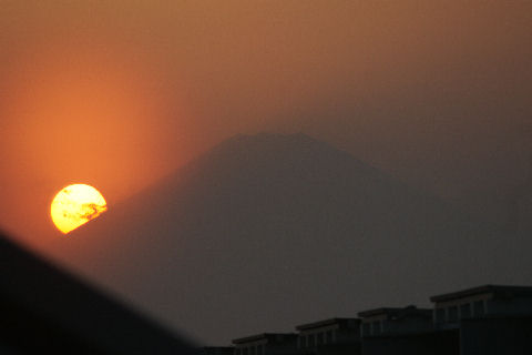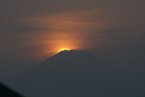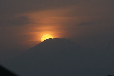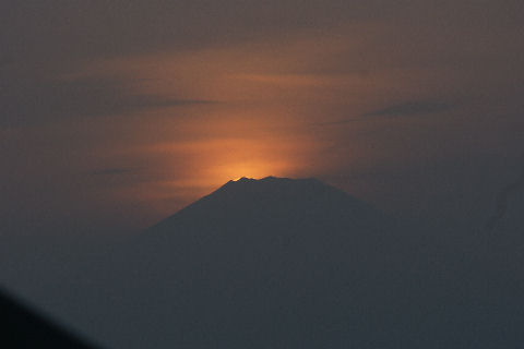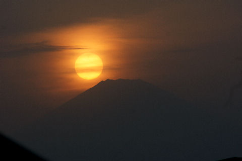夕焼けにならない富士山真っ赤な夕焼けを期待したが残念! |