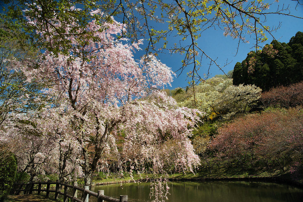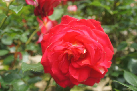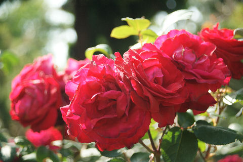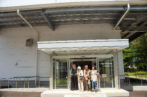 好天で人出が多い館内で展示もあるので入場料は400円、薔薇園は庭の芝生の先にあってちょうど満開。その後、館内の展示も見てトイレを借りてから退出。 |