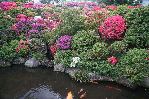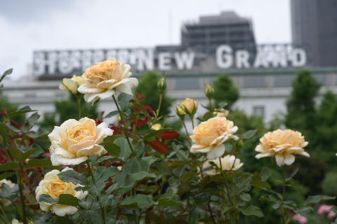 雨は降りそうで降らず公園内でもガーデン・ネックレスのイベントをやっている。薔薇園はもっとあるかと思っていたが期待外れな感じ。 |