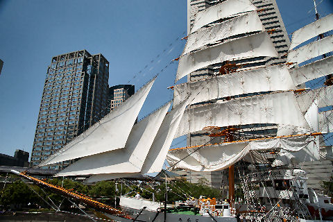 山下公園へ歩いて移動みなとみらいホールから歩いて、赤レンガの横を通り汽車道を通って山下公園まで移動。 |