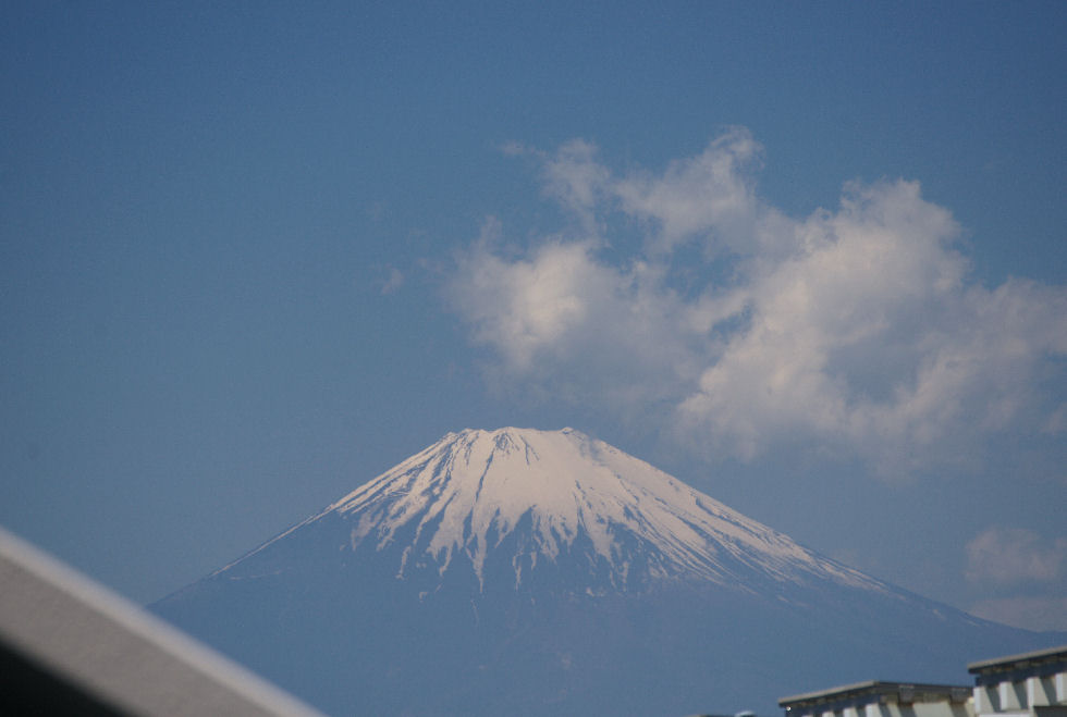 久しぶりに富士山がもう山開きも近づき登山道の雪かきもやったとの報道もあったが、雪は殆ど無くなっている。 |