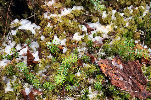 富士山の雪、消えそうもう梅雨入りしそうな季節、富士山の山頂に残る雪も減ってあと少し。 |