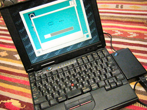 懐かしのパソコン:IBM TP535日本IBM設計の弁当箱PC、塗装がベタベタになるゴム状塗装。 |