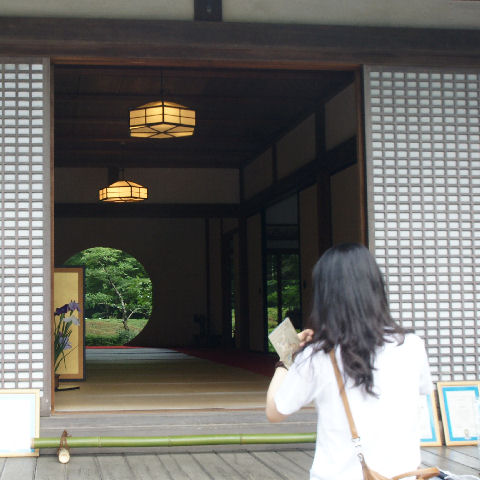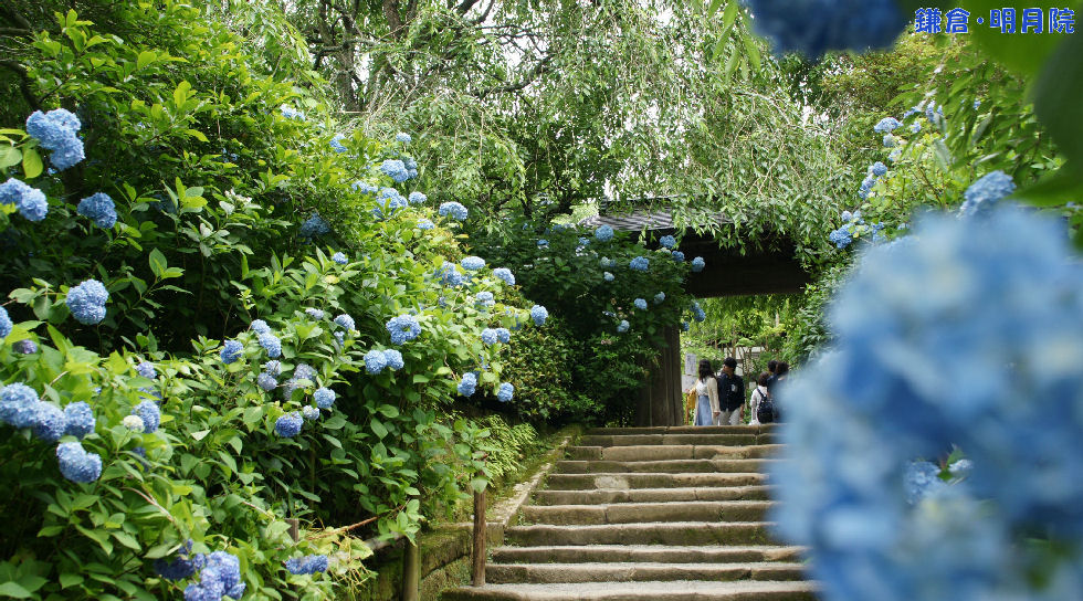 鎌倉・明月院の紫陽花紫陽花がそろそろ見頃とのことなので偵察を兼ねて、夕方4時を狙って訪問。 さすがに入る人より帰る人が多くてみるみる空いてはくるが、丸窓の前は長い行列が。 |