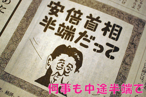 そのバカ議員の親分は「半端」だらけ何事も口先だけで中身が伴わず「半端」だらけ。大阪の地震の夜も幹事長としゃぶしゃぶで呑気に会食。 家に帰れず風呂も入れない被災者が居ることは完全無視、「きちんと対応」は口先だけ。 |
