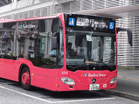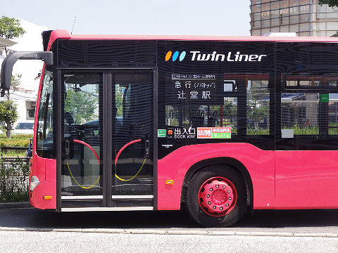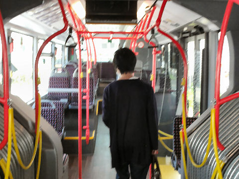 ツインライナーに乗ってみた墓参りに行くのに朝の最後のバスを利用、さすがに10時過ぎで混んではいない。 急行なので途中の西高校前までノンストップ(朝の駅方向は完全ノンストップのよう)で運行、 連接バスだがエンジンは後ろ側にあって前半分を押して進むという構造。 |