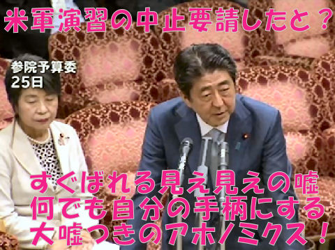 嘘を平気でつく安倍!何でも自分の成果だと言わんばかりの発言、でも米軍はそんな要請はない、と回答し嘘がばれる。 そう、米軍は安倍に忖度などしないから嘘は直ぐにばれてしまう、モリカケとは違う。 |