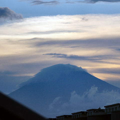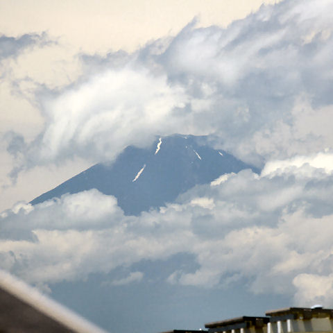 朝の富士山梅雨の時期だが朝だけ富士山が見えた、雪はほぼ消えて夏の姿に近づいている。 |