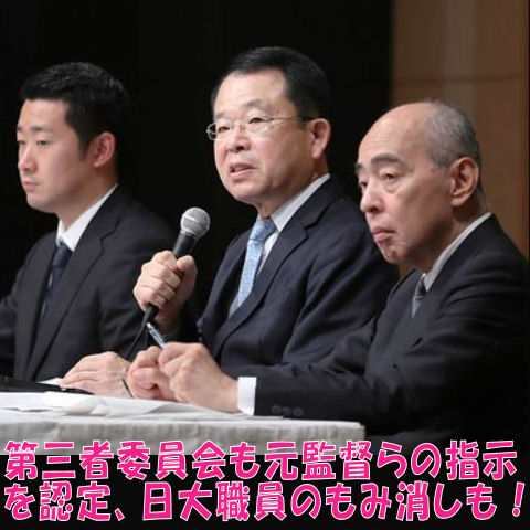 元検事なども日大への忖度無し元監督と元コーチの悪質タックル指示を認定、さらに日大職員によるモミ消し指示も公表。 日大トップ達が期待するような忖度だらけの曖昧な調査にはならず、当然か。 |