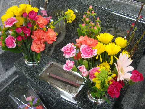 明日は20日でイオンが混雑する(5%オフの日)ので今日墓参りに。花がお彼岸で値上がりしていていつものように買って2000円越え。
