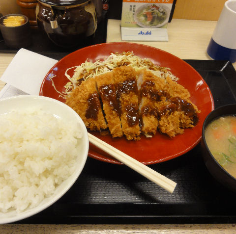 夕食は前回も行った「かつや」のロースかつ定食で栄養補給。