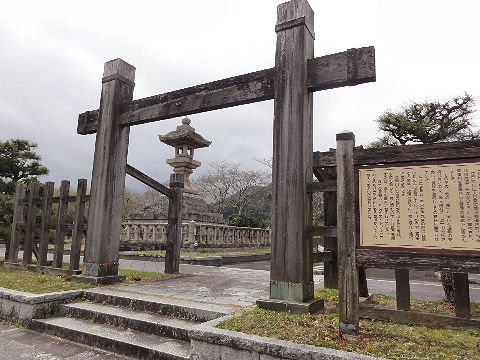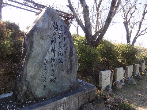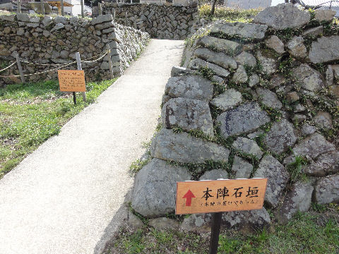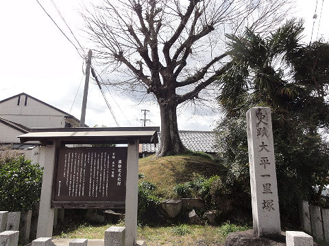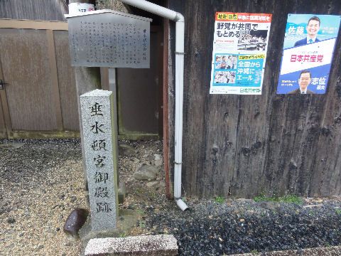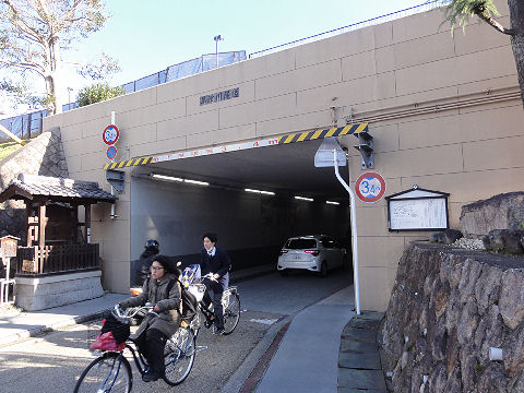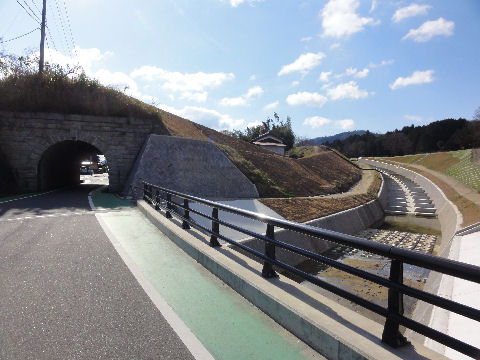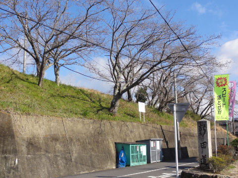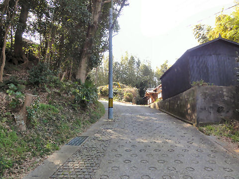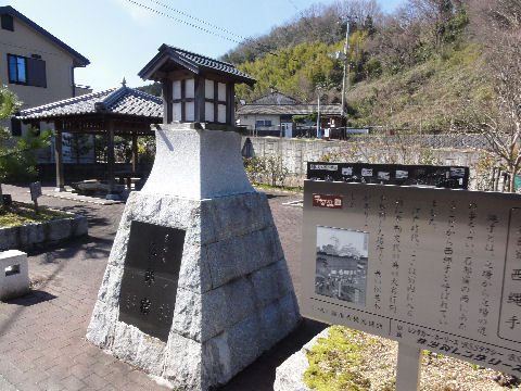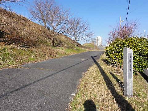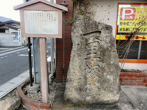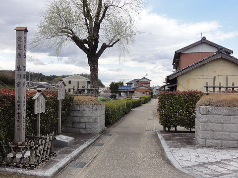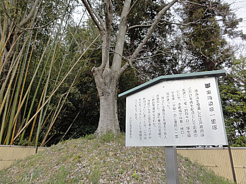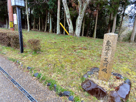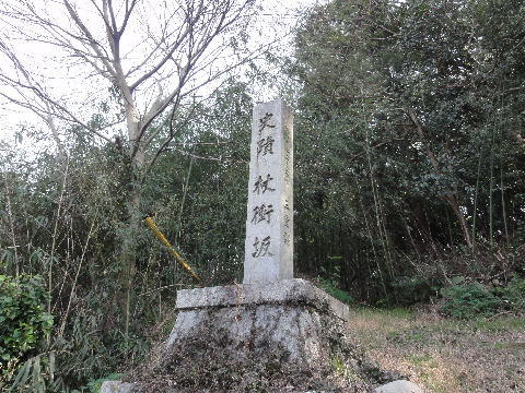 采女の一里塚は場所が変わっている、尾根道から杖衝坂の急坂を下り橋を渡り内部へ。