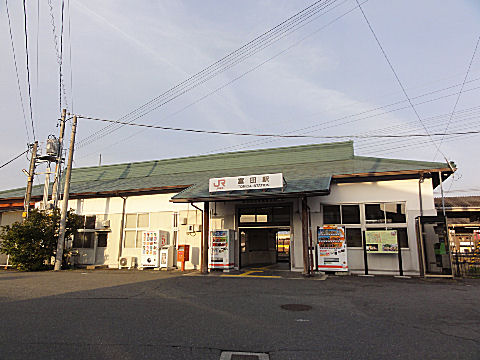 国道合流後また左の旧道へ入り十四川を越えると富田の中心部、これを抜けるとJR富田駅入口。ここで今日のゴール。