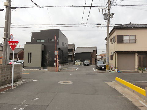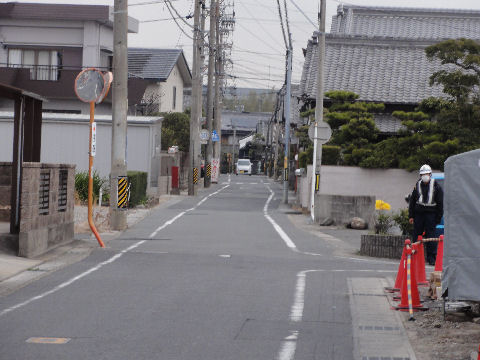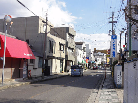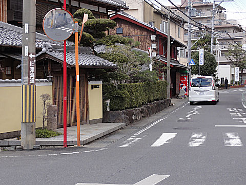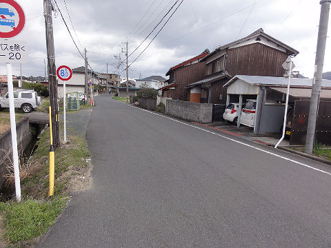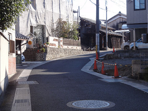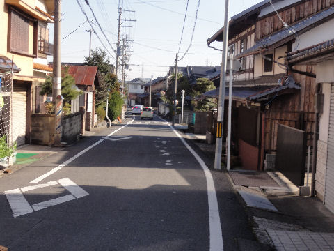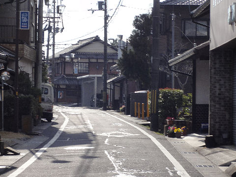 瀬田一里山で一里塚、旧道は左右にくねくねと曲がり民家の間を進む。萩の柳川を過ぎると大きな通りにぶつかり交差点近くの