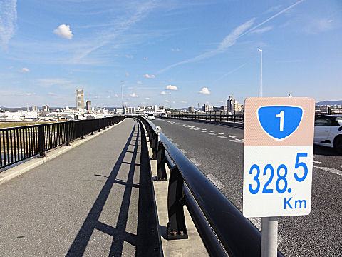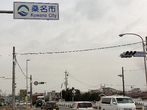 縄生の一里塚を見て、橋を越えて桑名市へ。