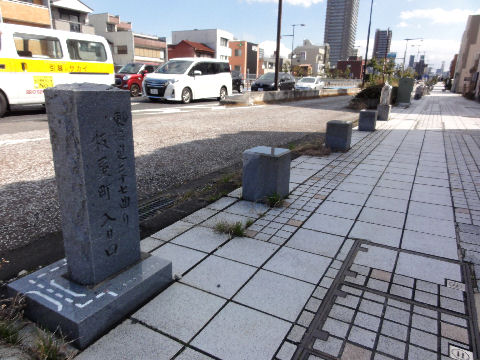 北上し追分でまた旧道へ。名残りの松から日永の1里塚、まっすぐ進み、近鉄ガードを越えると四日市駅前の道路の