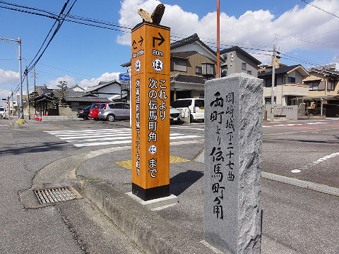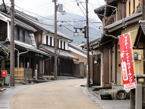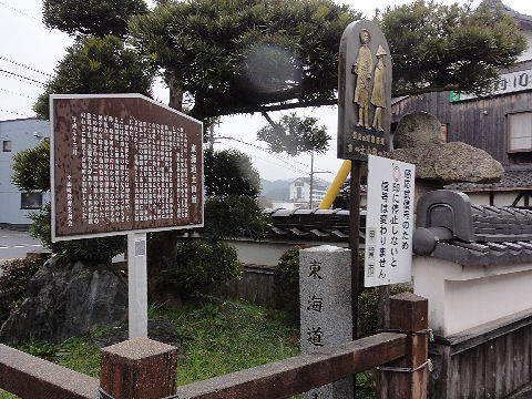 しばらく進むと今郷の一里塚。土山町へ入り黄色の舗装となる。