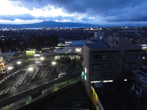 駅前のアパホテルに再度の宿泊、琵琶湖方向が綺麗に見える。対岸の坂本や比叡山山頂の灯りも見える。