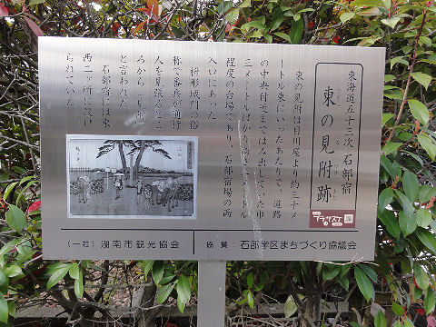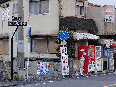 田村神社から移動し石山駅へ。北口のルネサス側から少し戻り街道へ、一里塚は消滅して何も残っていない。東海道線のガードを越えて南進、左折して