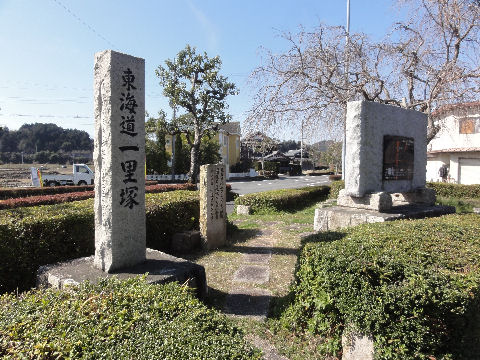 合流点には実装機専業メーカ・富士機械の本社工場、この先は知立松並木が続く。2つ目の来迎寺一里塚は南北の両塚が残る。