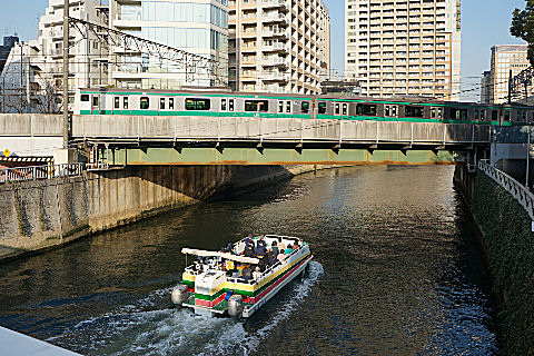 草津川を越え草津宿へ、まだ本陣も開いてない。中山道との追分で右折、旧草津川の堤防跡を左に見ながら進み右岸へ渡るが工事中で迂回。