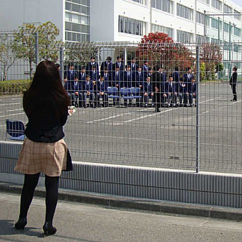 今日は入学式のようでピカピカの一年生が嬉しそうに両親と共に登校する様子が多く見られた。 |