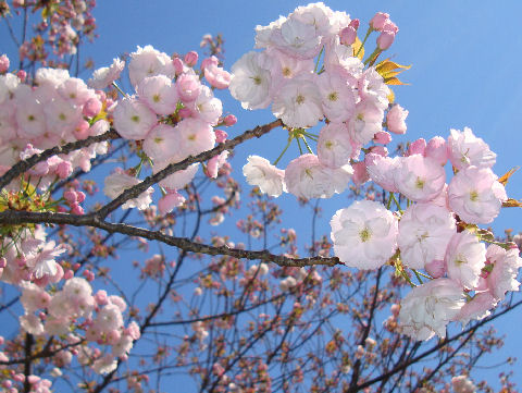 一番遅い八重桜が満開になり、いよいよ今年の桜もお終いに。 |