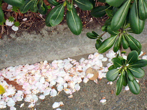 50mmマクロをα700に付けて公園を散策。公園の桜ももうお終いの時期で開花の早かったものは葉っぱだらけ。 遅かったものが満開でこれから花が散るという感じ。 |