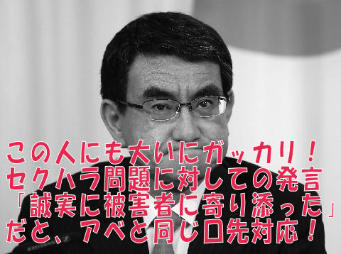 外務省のセクハラ事件で「被害者に寄り添った対応をした」とはよく言えたもの、アベ並みの酷い発言。 この御仁、もっと社会常識があるのかと思いきや外相専用機を作れだの我儘言いたい放題。 |
