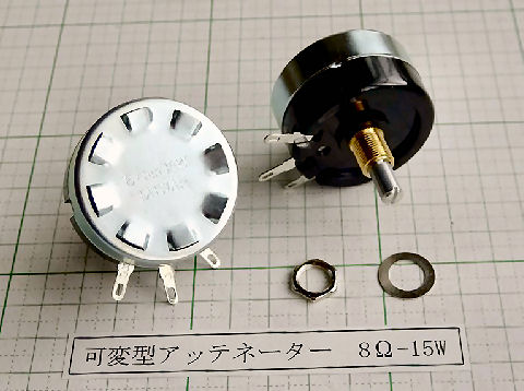 ヤマハのNS-15のアッテネータが接触不良、というより熱劣化のようなので交換用に注文(秋葉原のコイズミ無線にもある、1372円/個)。 可変抵抗器だがパワーを扱うので巻線型、使用に伴い熱劣化で接触不安定となるよう、何しろスピーカのパワーが通るのだから発熱も大きい。 15W定格だがあくまで低域カットのネットワーク後に使う、低域信号があるとすぐ焼損すると書いてある。 |
