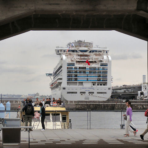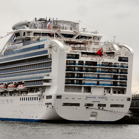 この船は三菱重工・長崎で作られた姉妹船(もうひとつはサファイア・プリンセス)が火災などで難航したもの。 |
