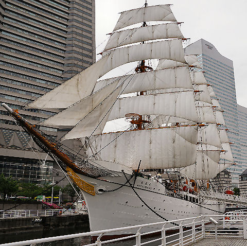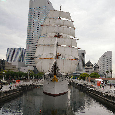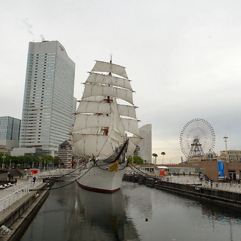 とにかく大きいので横浜公園の端からでも船が見えるという驚き。 |