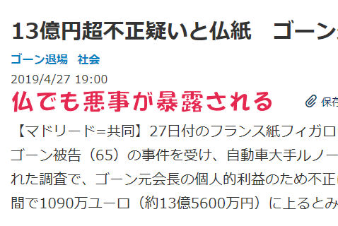 ゴーンは高額所得だったが合法的脱税?でフランスには殆ど納税していなかったことも判明、 税金も逃れるような奴はサポートしないという声もフランス国内にはあるそう。 |