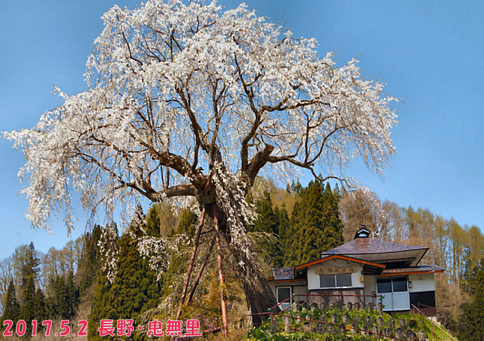 ![]() 桜満開の鬼無里・高橋地区 これは2年前に訪問した時の写真、今年ももう満開になったとのこと。今年は体調不良で訪問を断念、残念。 |