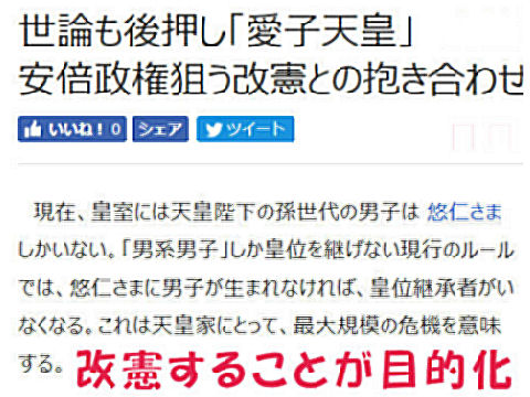 世間の顰蹙をかっている秋篠宮家の長男では国民の支持は得られないから?方針変更、ついでに憲法改正も やろうという野望? |