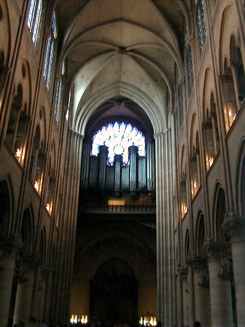 全部石造りだと思っていたがアーチなどは木造の構造だったよう、火事で側壁や前の塔は燃えないが天井は消失。 |