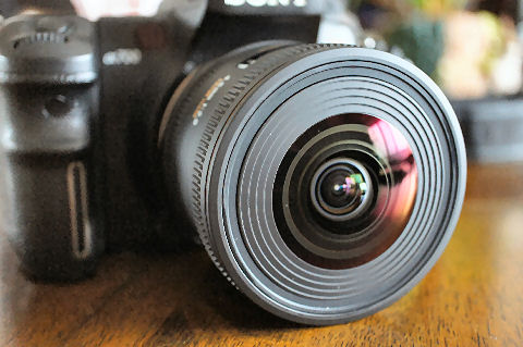 さっそくα700に取り付けて(APS-C専用)みた、魚眼なので先端のレンズが飛び出ていて、フートは筒の先に 付けるようになっている。 |