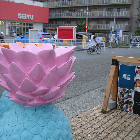 ピンクのパイナップルと向日葵の花。 |